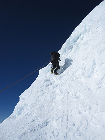 Abseiling from the summit of Mera Pk.